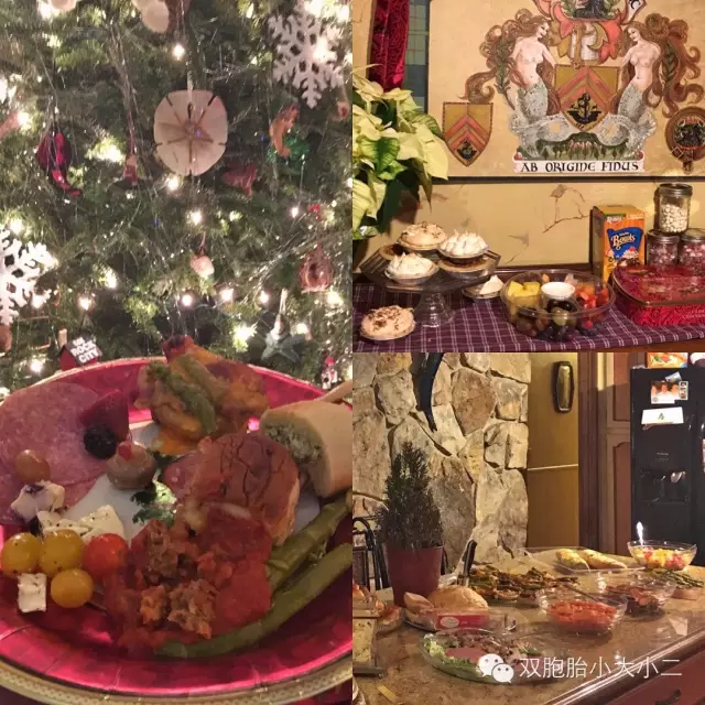 晚餐是很典型的家庭圣诞菜肴,饭后甜点是核桃派、花生派等小点心。这就是典型的美国家庭聚会。